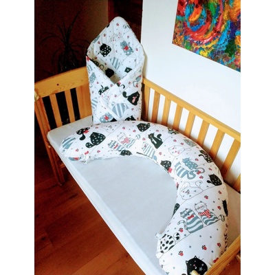 Kočičí set obsahuje: Zavinovačka pro miminko Kočky (ceníková cena 800 kč, akční 349 kč, v setu 279 kč Kojící polštář Kočičky (ceníková...