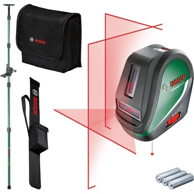 UniversalLevel 3 Křížový laser + Teleskopická tyč TP 320 Perfektní pro renovační, dekorační a údržbové práce Projekce laserového kříže s doplňkovou svislou čárou v 90° úhlu...