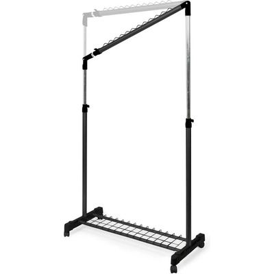 Teleskopický věšák se dvěma rameny. Vybaven dvěma policemi a dvěma organizéry na zavěšení tašek. Určen k uskladnění, sušení nebo větrání oděvů - bund, plášťů, košil a obuvi....