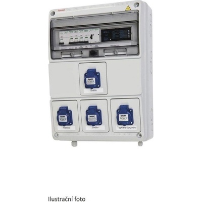 Automatika VArio pro bazény s 230 V filtrací, osvětlením, 400 V protiproudem, dávkováním s vlastním měřením (VA DOS / VA SALT SMART), tepelným čerpadlem a atrakcí.
