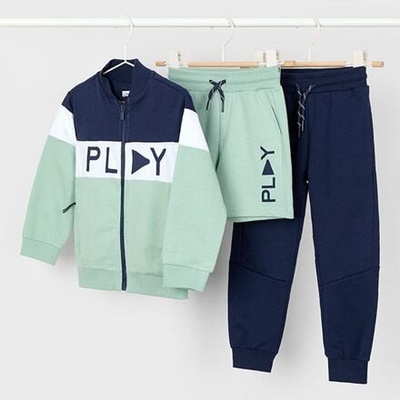 Mikina na zip, tepláky do nápletu s extra odolnými koleny a teplákové kraťasy od dětské značky Mayoral. úpletový materiál s jemnou smyčkou z rubové strany - nezateplený materiál...
