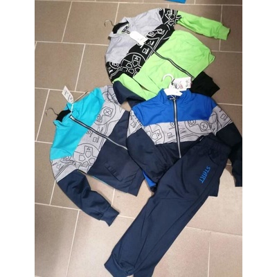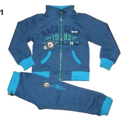 Chlapecká tepláková souprava složení 100% Bavlna, tepláky jsou do gumy, kapsy, na nohavici dole jsou manžetky, rukávy do manžetky, mikina je celopropínací na zip a má vpředu...