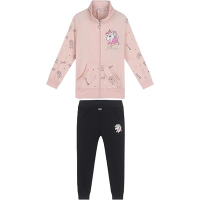 Dívčí tepláková souprava složení: 100% Bavlna mikina je propínací na zip, dvě kapsičky, na teplácích je dole manžetka, pas je do gumy (široká guma) + olivka na stažení prací...