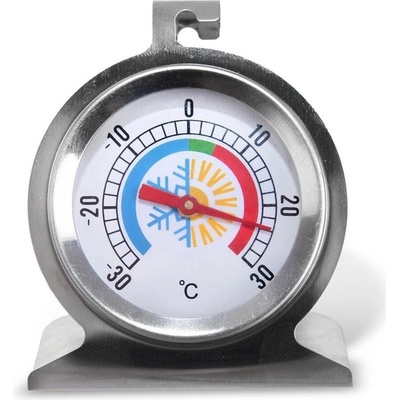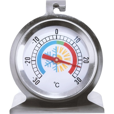 Teploměr do lednice. Lze zavěsit nebo položit do měřeného prostoru. Měří teplotu od – 30 °C do 30 °C. Materiál: nerez, sklo. Rozměry: 6x4x7 cm.