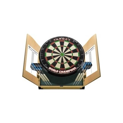 TARGET - DARTS WORLD CHAMPION HOME DARTS CENTER - KABINET S TERČEM A ŠIPKAMI Vysoce kvalitní dřevěný kabinet se sisalovým terčem Roundwire a s tabulkou pro zápis skóre. Obsah...
