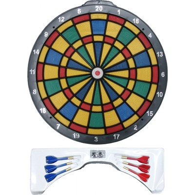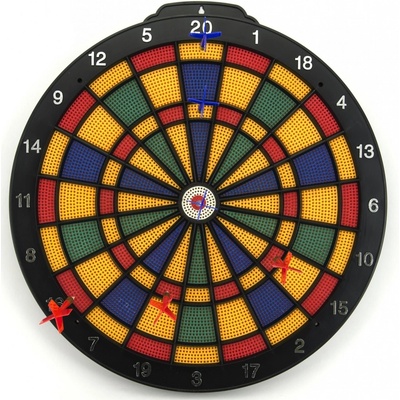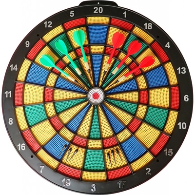 Softový terč pro šipky s plastovými hroty je ideální pro bezpečnou hru doma nebo ve školáchTerč má průměr 45 cm a je dírkovaný, což umožňuje snadné zachycení šipek s plastovými...
