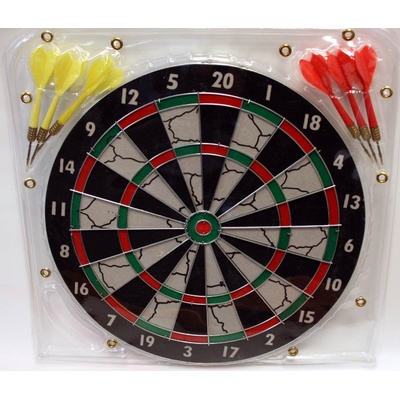 Sada se skládá z papírového terče a šesti ostrých šipek, ideální pro rekreační hru doma nebo na zahradě. Terč má průměr 41,5 cm a je vybaven kovovým rámem, který zpevňuje jeho...