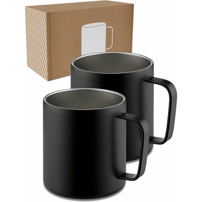 Černá termoska z nerezové oceli se chlubí velmi vysokou udržitelností tepla. Vnější víčko obsahuje 2 kelímky.