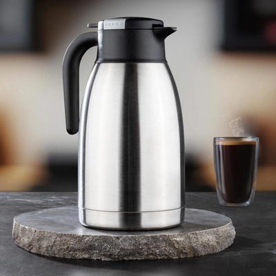 Nerezová vakuově izolovaná termokonvice o objemu 2 l do domácností či kanceláří.