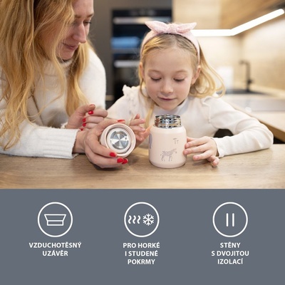 Vyzkoušejte praktickou termosku na jídlo, která udrží pokrmy teplé i studené, snadno se otevírá a skvěle padne do malých dětských ručiček.