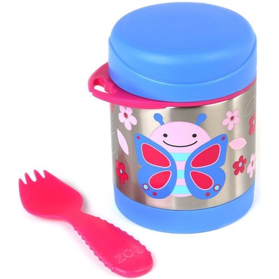 Termoska na jídlo s vidličkou SKIP HOP ZOO.Tato krásná termoska z nerezové oceli s potiskem udrží dětskou porci teplou či studenou. Součástí je praktická vidlička...