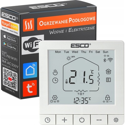 Bezdrátový termostat pro podlahové vytápění TC710 WIFI, výkon až 3500 W ~ 3,5 kW/230 V Může ovládat vytápění: - elektrickým podlahovým (podložky, topné fólie) - kapilárním...