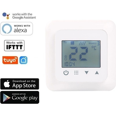 Moderní chytrý WiFi termostat s kapacitním dotykovým ovládáním, určený pro přímotopy a elektrické podlahové topení. Nabízí přesnou regulaci, 7denní program, podporu Tuya/Smart...
