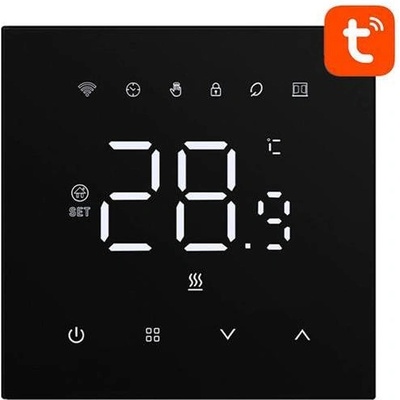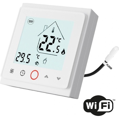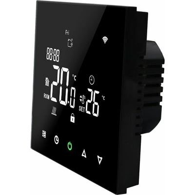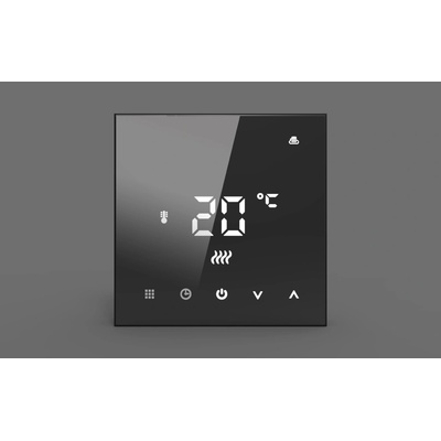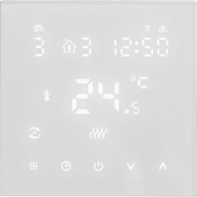 Moderní chytrý WiFi termostat s kapacitním dotykovým ovládáním ve hranatém designu, určený pro přímotopy a elektrické podlahové topení. Nabízí přesnou regulaci, 7denní program,...