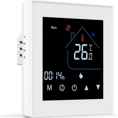 AS-HY08WE-2B = Chytrý pokojový termostat sloužící ke kontrole vytápění v domě pomocí chytrého telefonu nebo tabletu z jakéhokoliv místa díky chytré aplikaci, ovládání pomocí...