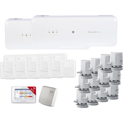 Honeywell Evohome - WiFi sada s bezdrátovými termostaty DTS42 pro chytrou regulaci vytápění rodinných domů, bytů a kanceláří. Sada obsahuje 12 termopohonů a 2 regulátory HCC100...
