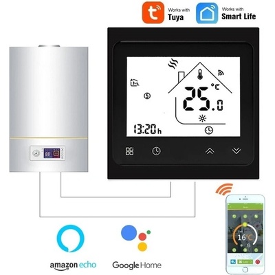 Moderní chytrý WiFi termostat s kapacitním dotykovým ovládáním, určený pro plynové a elektrické kotle, teplovodní radiátory a teplovodní podlahové topení. Má beznapěťový spínací...