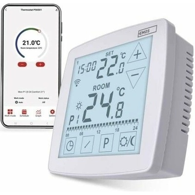 Termostat EMOS P56S01 GoSmart pokojový programovatelný drátový WiFi Mějte teplotu doma vždy pod kontrolou – odkudkoliv. Programovatelný termostat EMOS P56S01 GoSmart...