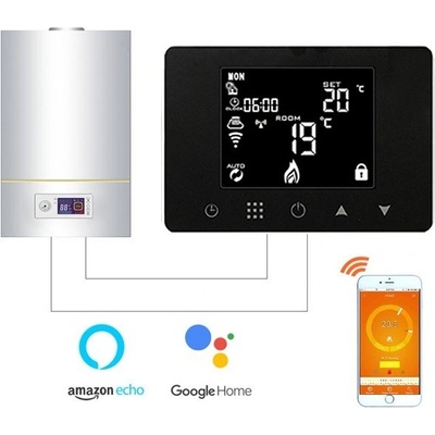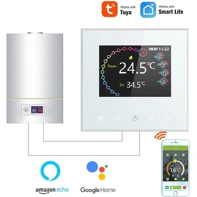 Digitální wifi termostat s inteligentními funkcemi pro smart domácnost, s dotykovým ovládáním a prodlouženým snímačem s délkou 3m. ZÁKLADNÍ VLASTNOSTI wifi modul pro...