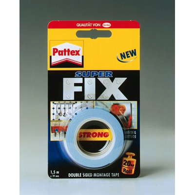 Oboustranná lepicí páska Lepicí páska Pattex Super Fix pro lepení většiny materiálů (sklo, kovy, plasty, dřevo, kámen, zrcadla, nylon, PP a PE), ideální pro fixaci předmětů v...