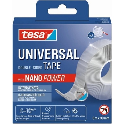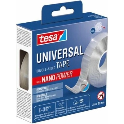 tesa® Univerzální Nanotape může být uložena v jakékoli zásuvce nebo nářadí a je snadno dostupná, ať už na cestě v autě nebo karavanu. Oboustranná páska nabízí velkou lepící sílu...