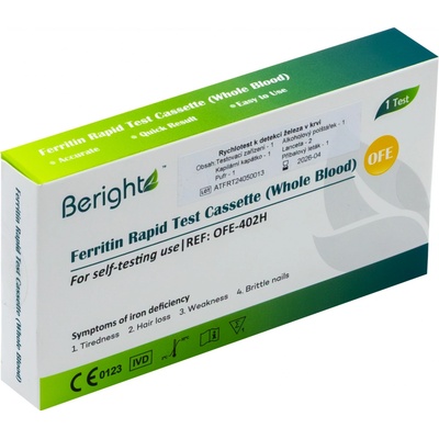 Exkluzivní rychlotest značky JOYTEST určený pro orientační stanovení nedostatku železa (feritinu) z kapky krve. Výsledek do 10 minut bez nutnosti laboratorního vybavení....