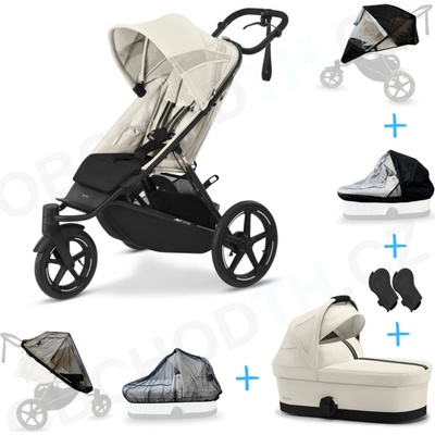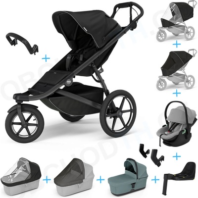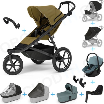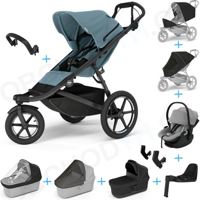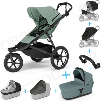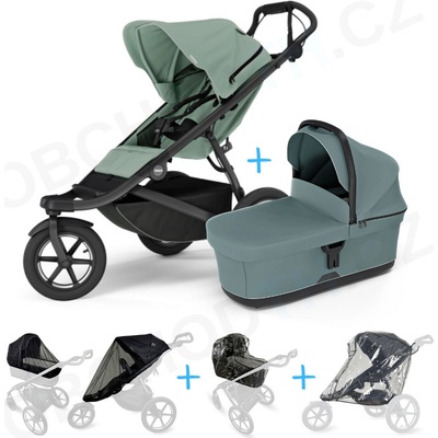 Thule Set 5v1 Urban Glide 3 Mist green s magnetickou sponou 2025 + korba Mid blue + pláštěnky + ochranná síť
