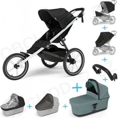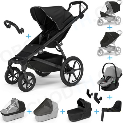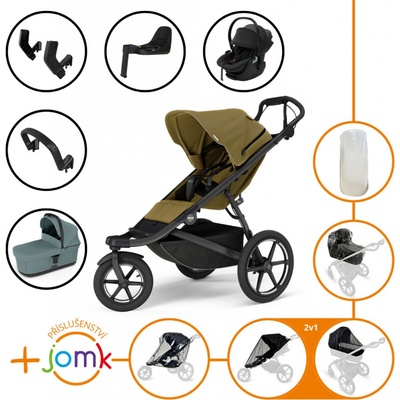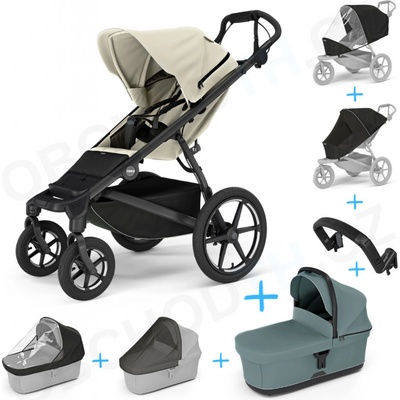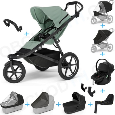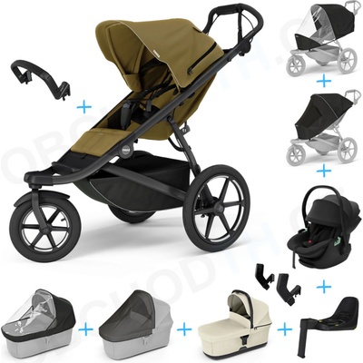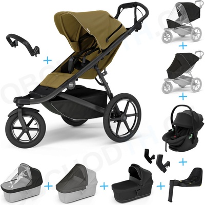 Thule Urban Glide 3 Set 10v1 Nutria green 2024 + madlo + korba Black + pláštěnky a moskytiéry Thule + Autosedačka Thule Maple Black s ISOFIX základnou Thule Alfi a adaptéry