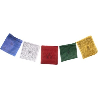 Tibetské modlitební praporky mají 5 různých barev, které zastupují 5 elementů země. Červená barva - oheň, zelená - dřevo, žlutá - země, modrá - voda, bílá - kov. Každý praporek nese buddhovo učení (mantry a sútry) a vyobrazení pěti různých manter. Výška [cm]...