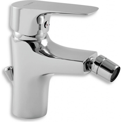 Bidetová baterie Nice povrchová úprava chrom výška výrobku 143 mm typ kartuše 35 mm s pevným výtokem s mechanickou výpustí 5/4" kloubový perlátor s možností nastavení úhlu součástí baterie přívodní hadičky