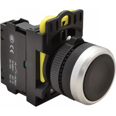 Klasický tlačitkový spínač černýKlasický černý tlačítkový spínač odolný proti vibracím s kontakty 1xNO (spínací), jmenovitým napětím 230V a jmenovitým proudem...