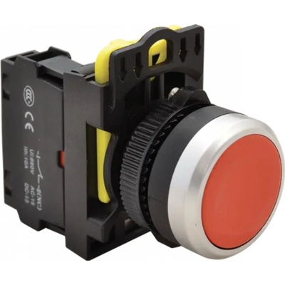Klasický tlačitkový spínač červenýKlasický červený tlačítkový spínač odolný proti vibracím s kontakty 1xNC (rozpínací), jmenovitým napětím 230V a jmenovitým proudem...