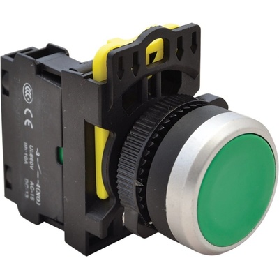 Klasický tlačitkový spínač zelenýKlasický zelený tlačítkový spínač odolný proti vibracím s kontakty 1xNO (spínací), jmenovitým napětím 230V a jmenovitým proudem...