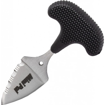 Nůž Cold Steel Mini Pal 43NSK, tlačná dýka, jednostranně broušená čepel se zoubkovaným ostřím, gumová protiskluzová rukojeť, plastové pouzdro s kroužkem na klíče.