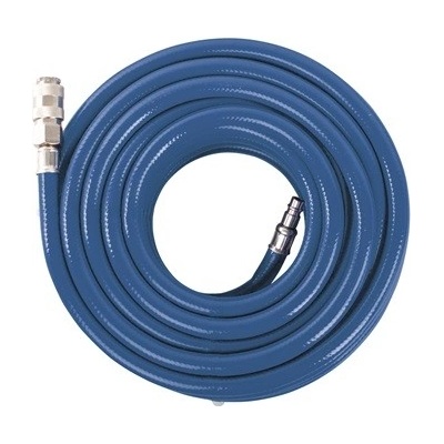Vysokotlaká hadice se vsuvkou a rychlospojkou Hadice z PVC s tkanivovou vložkou, včetně vsuvky a rychlospojky. Vhodná pro připojení pneumatického nářadí. Provozní tlak 15...