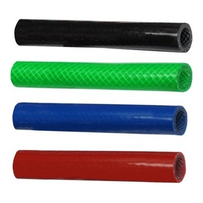 Čirá průhledná PVC hadice vyztužená vysokopevnostním PES vláknem. Pracovní tlak 4 bar, poruchový 12 bar. Pracovní teplota od -5°C do +60°C.