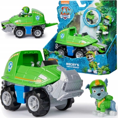 Patří váš potomek mezi fanoušky pohádky Tlapková patrola? Udělejte mu radost figurkou Rocky a želvím vozidlem Tlapek z džungle. Autíčko přetransformuje a vyrazí na záchrannou...