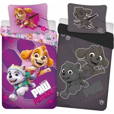 Mikroplyšové povlečení s motivem štěněcích hrdinů ze seriálu Tlapková patrola Skye a Everest v růžovém provedení. Povlečení je oboustranné z druhé strany jsou barevné obrázky...