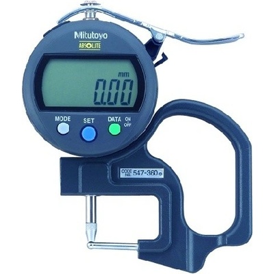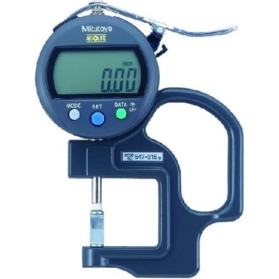 Tento ABSOLUTE Digimatic tloušťkoměr umožňuje měřit folie, papír atd., s plochými doteky.