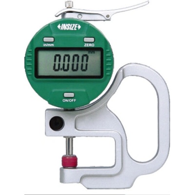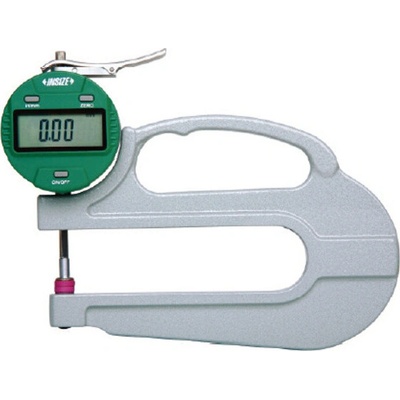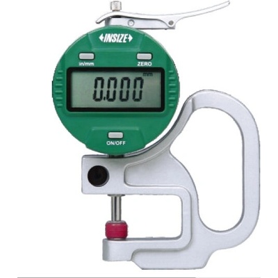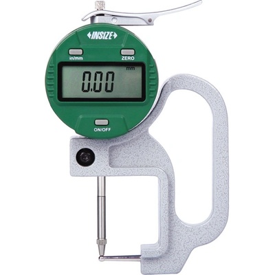 Digitální tloušťkoměr s talířkovými doteky z keramiky od společnosti INSIZE o rozsahu 0-10 mm s přesností 0,005 mm a s výstupem dat, hodí se na měření fólií, papíru.