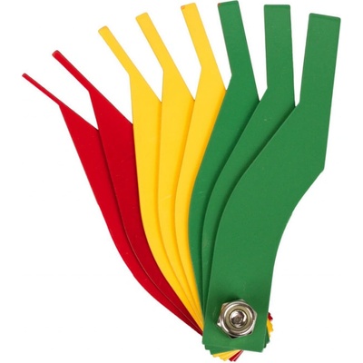 Tloušťkoměr pro měření brzdových destiček. Červená: 2, 3mm-Špatné; Žlutá: 4, 5, 6mm-Nebezpečné; Modrá: 8, 10, 12mm-Dobré.