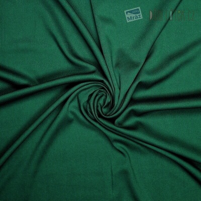 Směsová látka (šatovka) v jednobarevné tmavě zelené barvě v krešovaném provedení. Šatovka je v šířce 145 cm a je vyrobena ze 60% viskózy, 35% bavlny a 5% elastanu (gramáž...