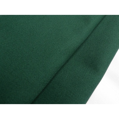 Kostýmová strečová látka tmavě zelená je příjemná a pevná. Vhodná je na volnočasová saka, kalhoty, sukně nebo šaty.