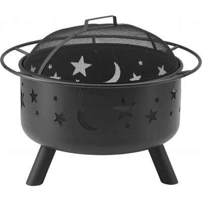 Rozměry produktu: 32 x 66 cm v průměru. Rozměry balení: 66 x 66 x 32 cm. Rám z pevné oceli s černým nátěrem. Víko s ochranou proti létajícím jiskrám. Otvory v ohništi ve tvaru...