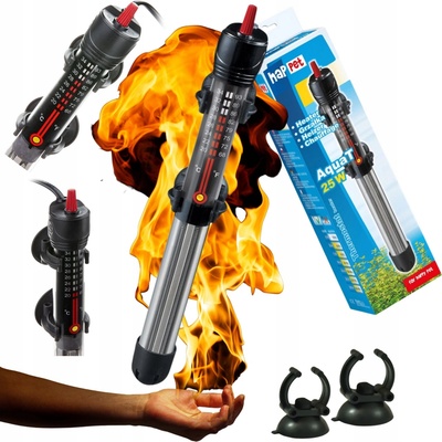 Topné těleso s termostatem, pro akvária o objemu 10 - 25 l, spotřeba energie 25 Watt, kabel 2,5 m, 2 přísavky, nastavení teploty vody od 19 do 31°C v intervalech 0,5°C....