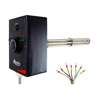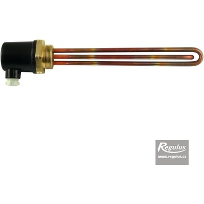 Topné těleso 5 kW, typ P s termostatem G6/4", Regulus 18915, 3x230/400V Elektrické topné těleso G 6/4" s termostatickou hlavicí 3x230/400V s delším netopicím koncem do...
