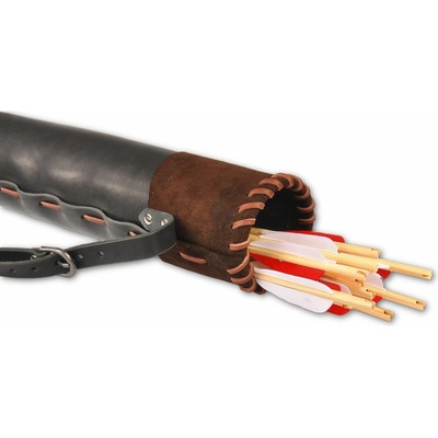 Pouzdro na šípy s popruhem přes rameno a opasek. Opaskový toulec. Obsahuje 3 tubusy odlišných délek, tudíž je pouzdro vhodné pro různé délky šípů. Toulec na šípy na opasek a na...