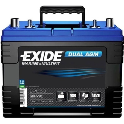 EXIDE Dual AGM 12V 240Ah EP2100 trakční baterie Třída baterií DUAL je konstruována pro dodávku energií lodím s jednou sadou baterií pro všechny spotřebiče (případ B). Je také vhodná jako dodatečná baterie k pohonu elektrických navijáků, malých, závěsných elektromotorů...