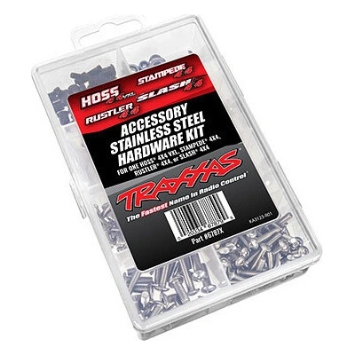 Traxxas sada nerezových šroubů pro 4WD modely Hoss VXL, Slash, Stampede, Rustler. Upgradujte šrouby na vašem modelu za nerezové pro dlouhotrvající výkon ve vlhkých podmínkách....