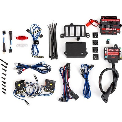 Obsah balení Balení obsahuje Pro Scale napájecí řídící modul LED, rozvodný modul LED, držák modulu, kabely senzoru motoru, propojovací kabel s přijímačem, propojovací Maxx...